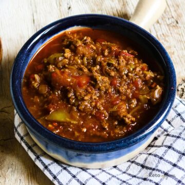 If you love stuffed peppers and could have them any day of the week, we've got good news for you. This is the keto soup version of your favorite meal that you can whip up with a few simple ingredients full of flavor. I used grated zucchini to substitute the rice that would normally go into this soup. Another option would be cauliflower rice, which woud work just as well when in season.