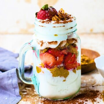 - Top each parfait with chopped walnuts, coconut flakes, and a sprinkle of cacao powder. Serve immediately or store in the refrigerator for up to 3 days.