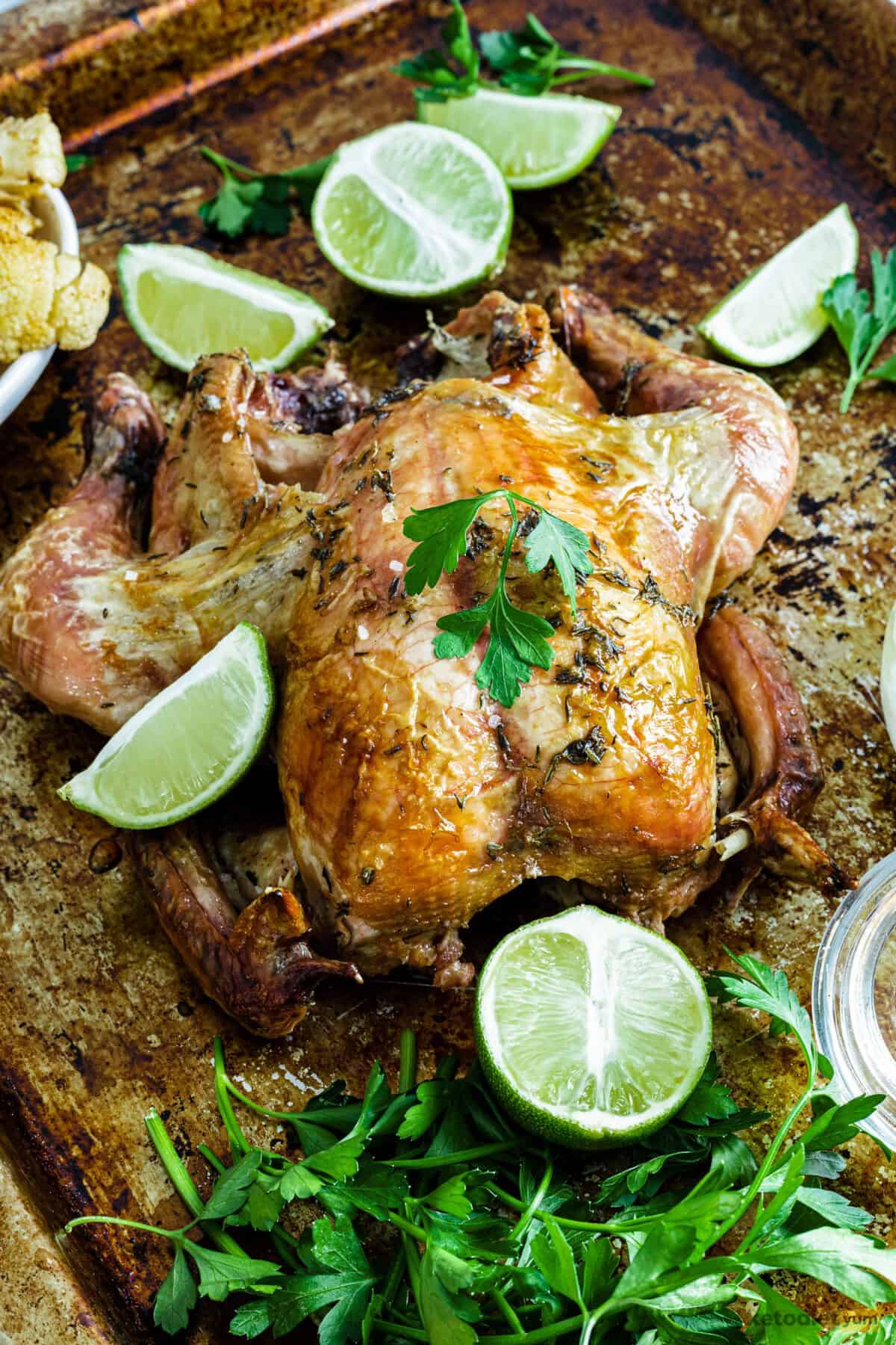 - Let the chicken rest for 5 minutes before serving. Serve with lime wedges and your favorite Greek yogurt. This baked chicken recipe goes great with so many low carb keto side dishes.